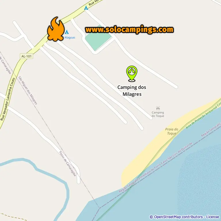 Map with campsites in São Miguel Dos Milagres