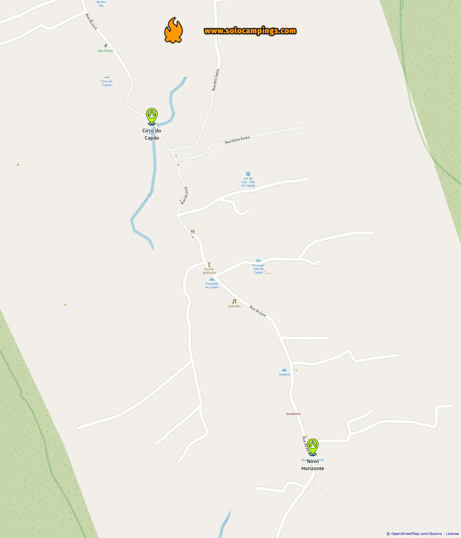 Map with campsites in Caeté Açu