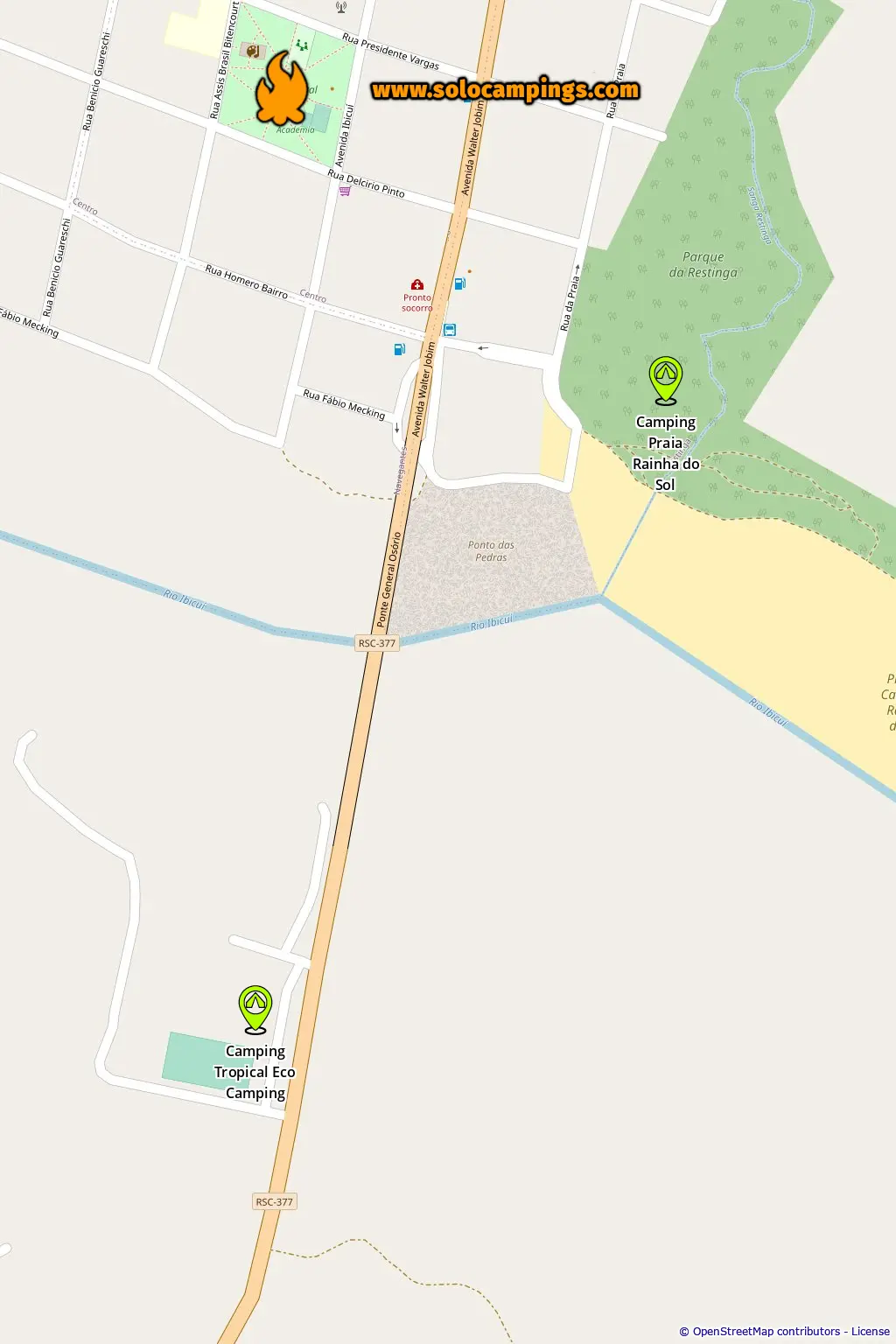 Map with campsites in Manoel Viana