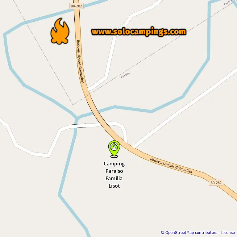 Map with campsites in Paraíso