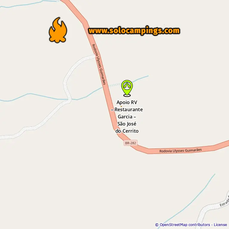 Map with campsites in São José Do Cerrito