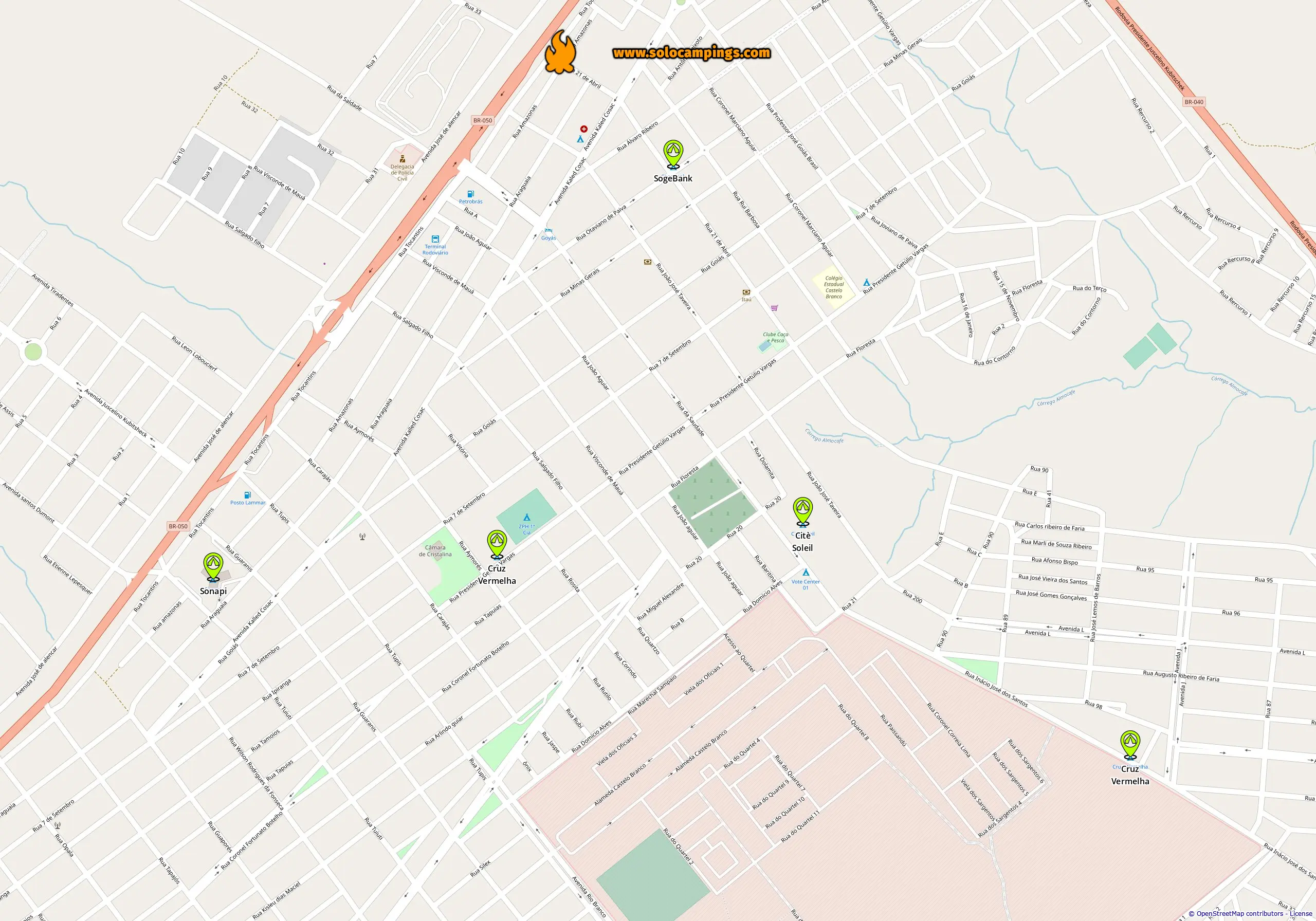 Kaart met campings in Cristalina