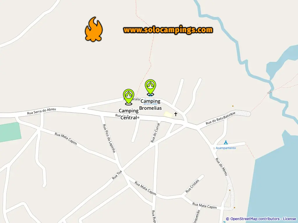 Mapa z polami kempingowymi w Lapinha Da Serra