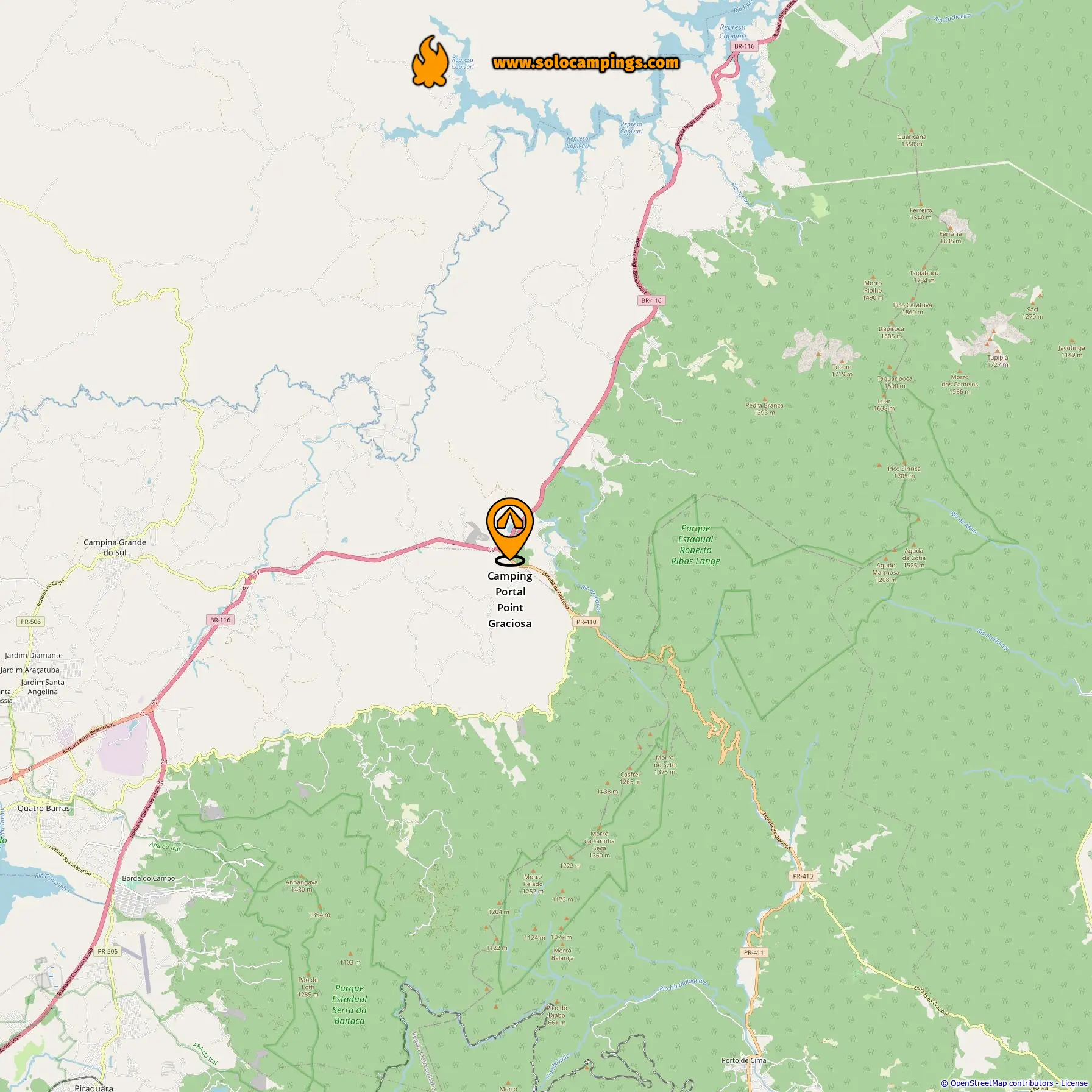 Odległość od pola kempingowego do Quatro Barras: 11.13 mi