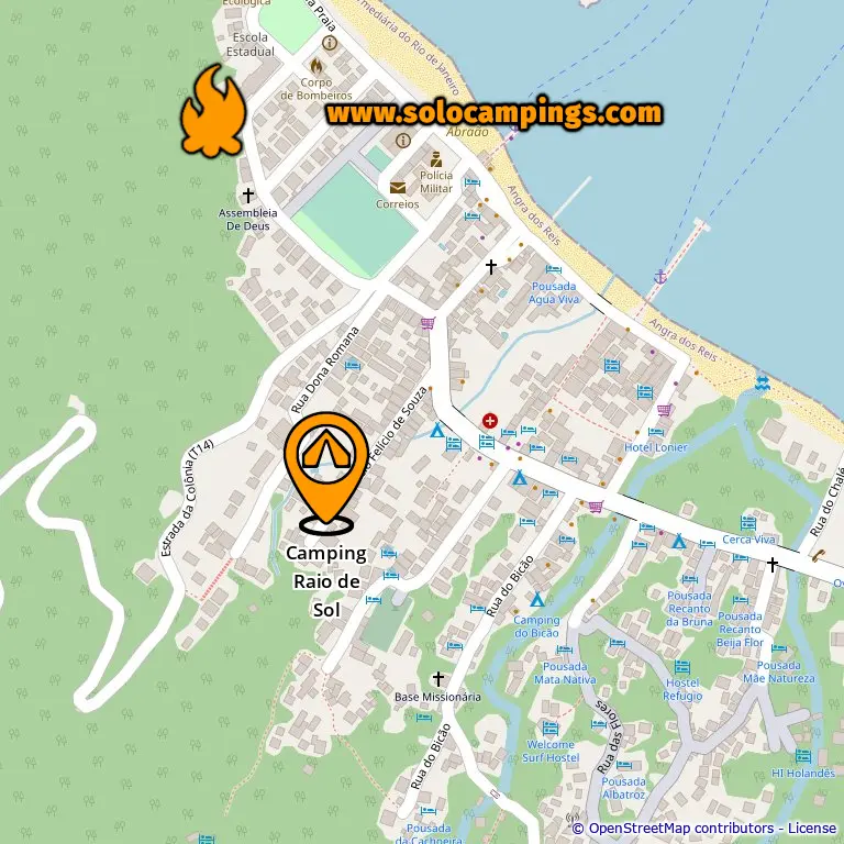 Morada: Rua: Amâncio Felício de Souza s/n° – Vila do Abraão, em Ilha Grande. O Acesso ao camping é por uma alameda que fica no final da rua Amâncio. Tem placas indicando a entrada.