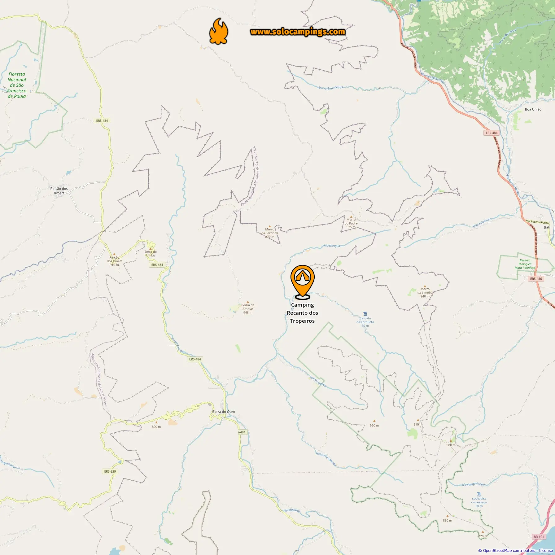 Localização de Camping Recanto dos Tropeiros