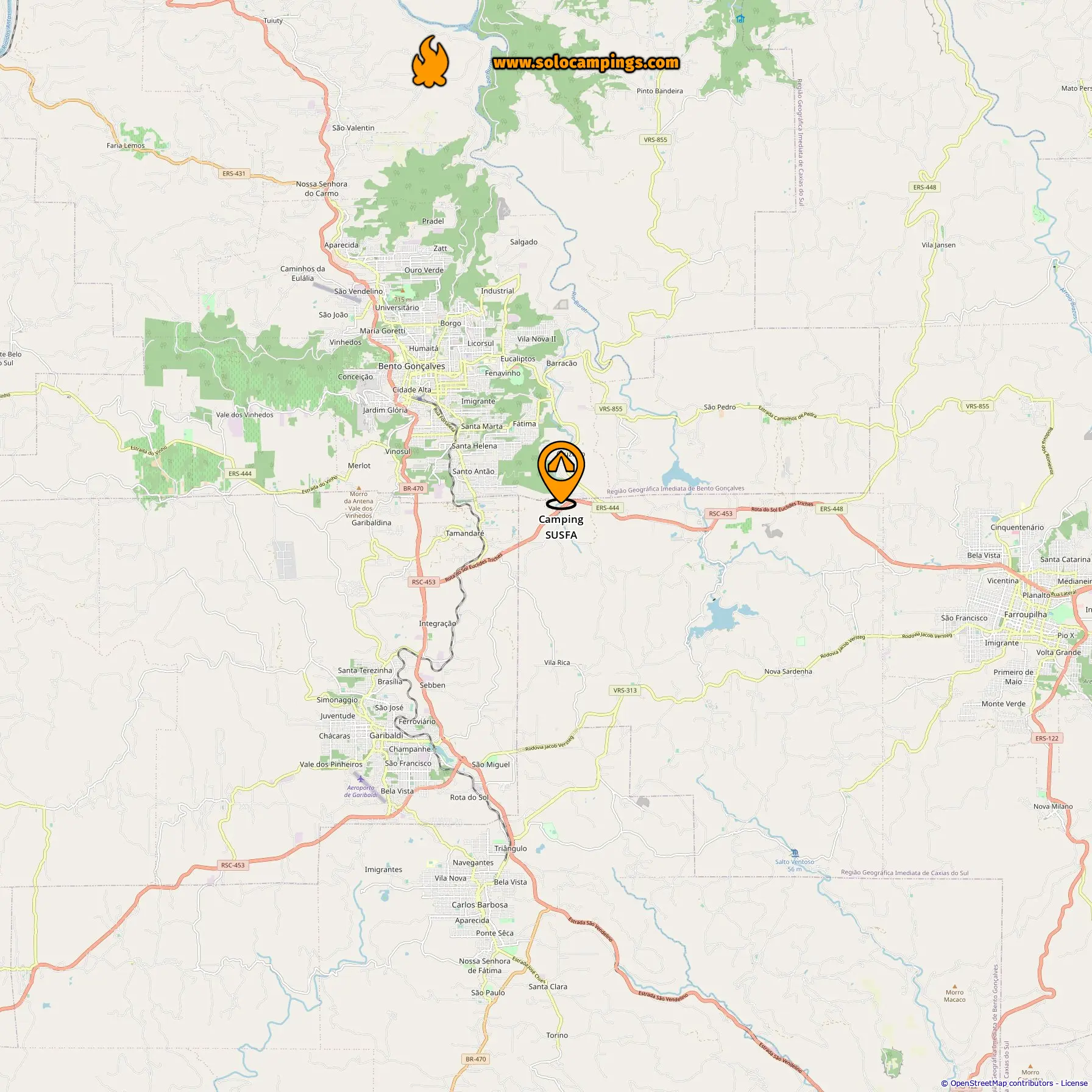 Distância do acampamento para Bento Gonçalves: 7.92 km